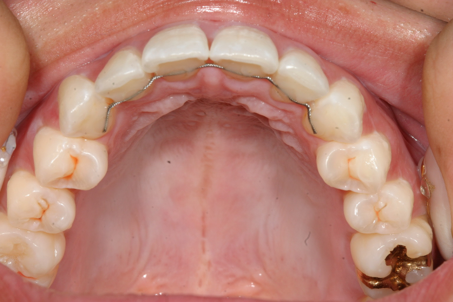 特に難儀したのが右上の奥歯の位置関係が悪く、先ずは右上の親知らずを抜歯してそこに奥歯を順番に後ろへ送っていくと言う手順です。そう言うふうにする事により飛び出した犬歯をアーチに乗せると言う事が可能になりますが手間のかかる仕事でした。