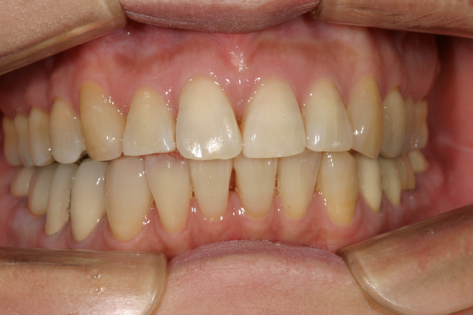 綺麗に咬合してます。 最初の正面観見て頂ければ正中が左にシフトし改善しているのが分かります。
