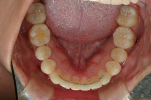 全体的な歯列は綺麗ですが左右の犬歯が少し捻転しています。