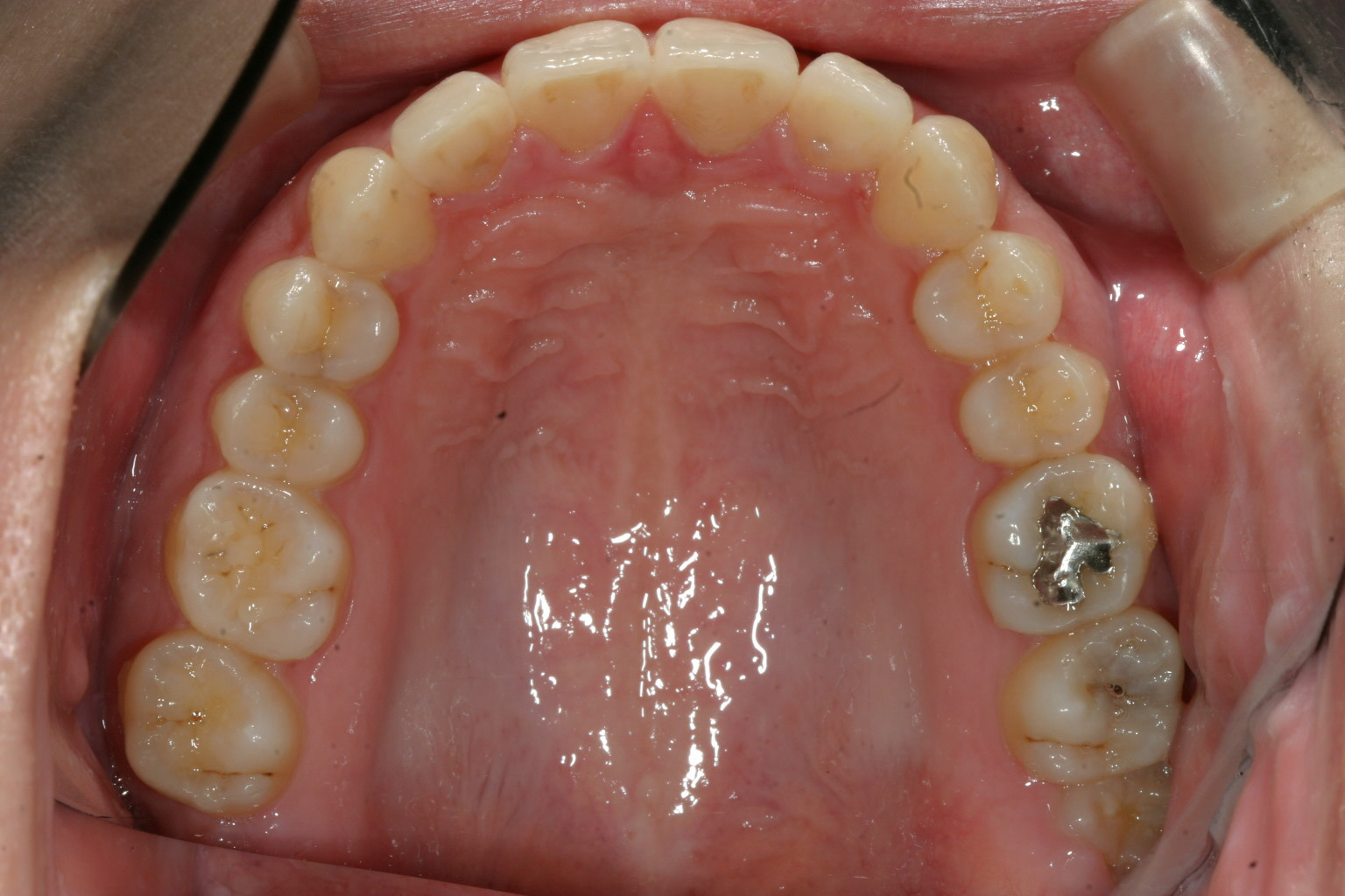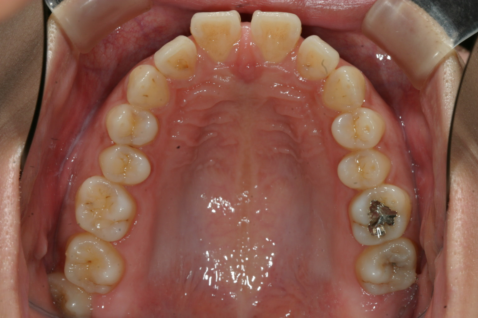 通常矯正だけしかされてない歯科では当たり前のように上顎の小臼歯を抜歯して治療しようとします。しかしこういったケースで抜歯すると余計に手間と時間を費やすだけで、いい結果に終わりません。