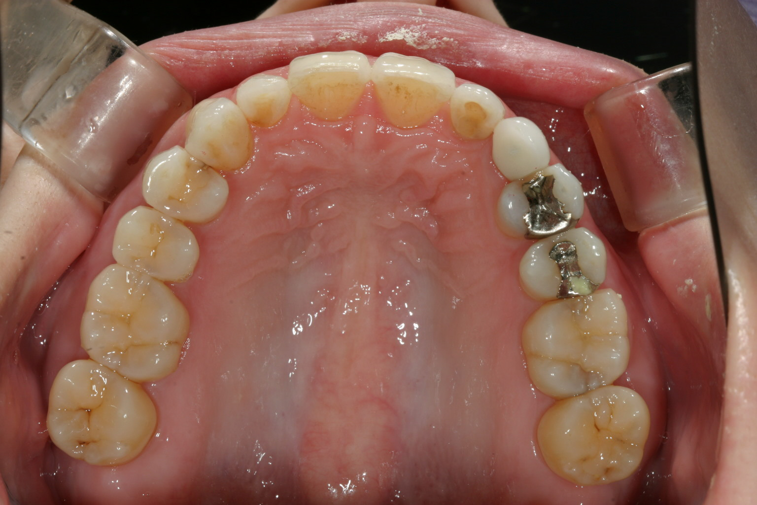 全体的に大した乱れの有るケースでは無いですが前歯部に少しの叢生と正面から見ると咬み合わせが少し深いように見えますのでそれを修正させて頂きました。