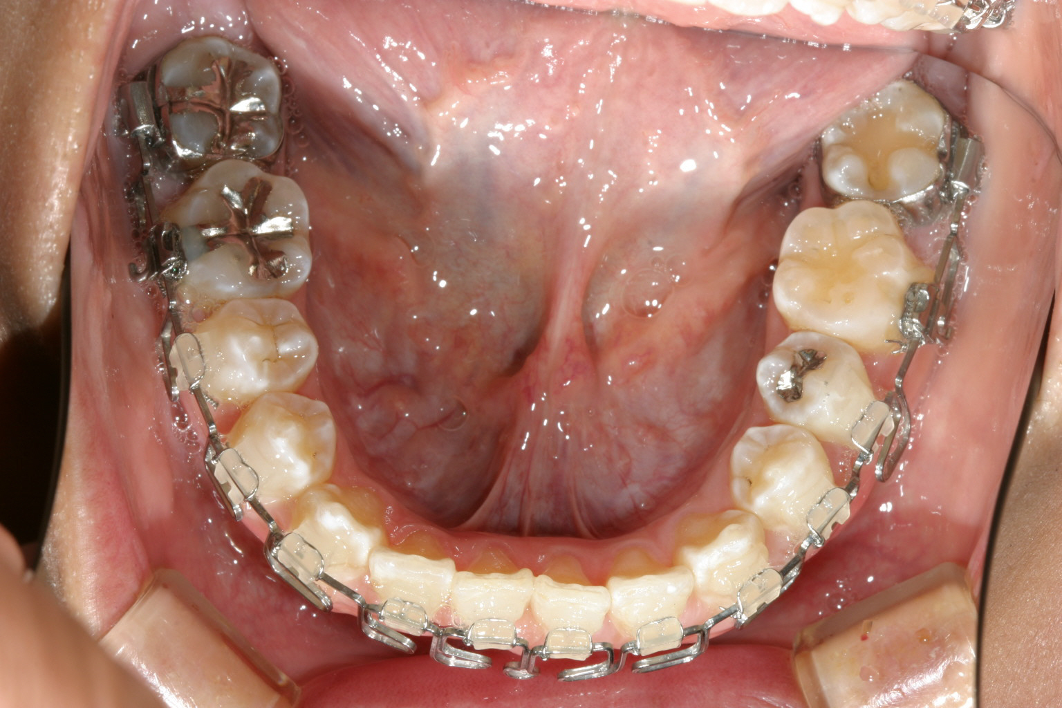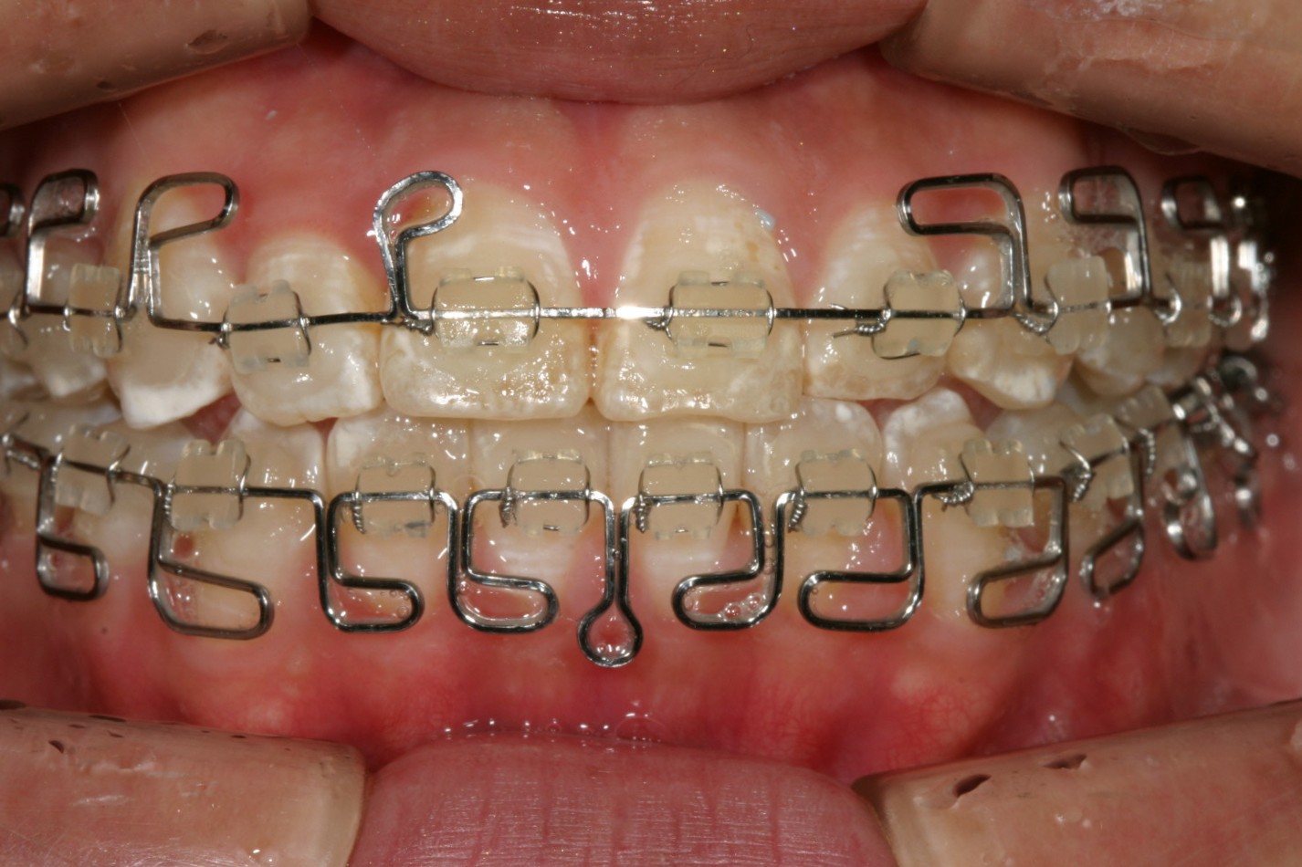 この方法は確かに見栄えは悪いですが、個々の歯にループが付いている為、歯に対しては柔らかい力がかかり歯にやさしく、又ループにより個々の歯が独立している為ワイヤーが最初から歯のブラケットにキッチリとはいるので無駄な時間が省け期間を短縮できると言うメリットが有るのです。