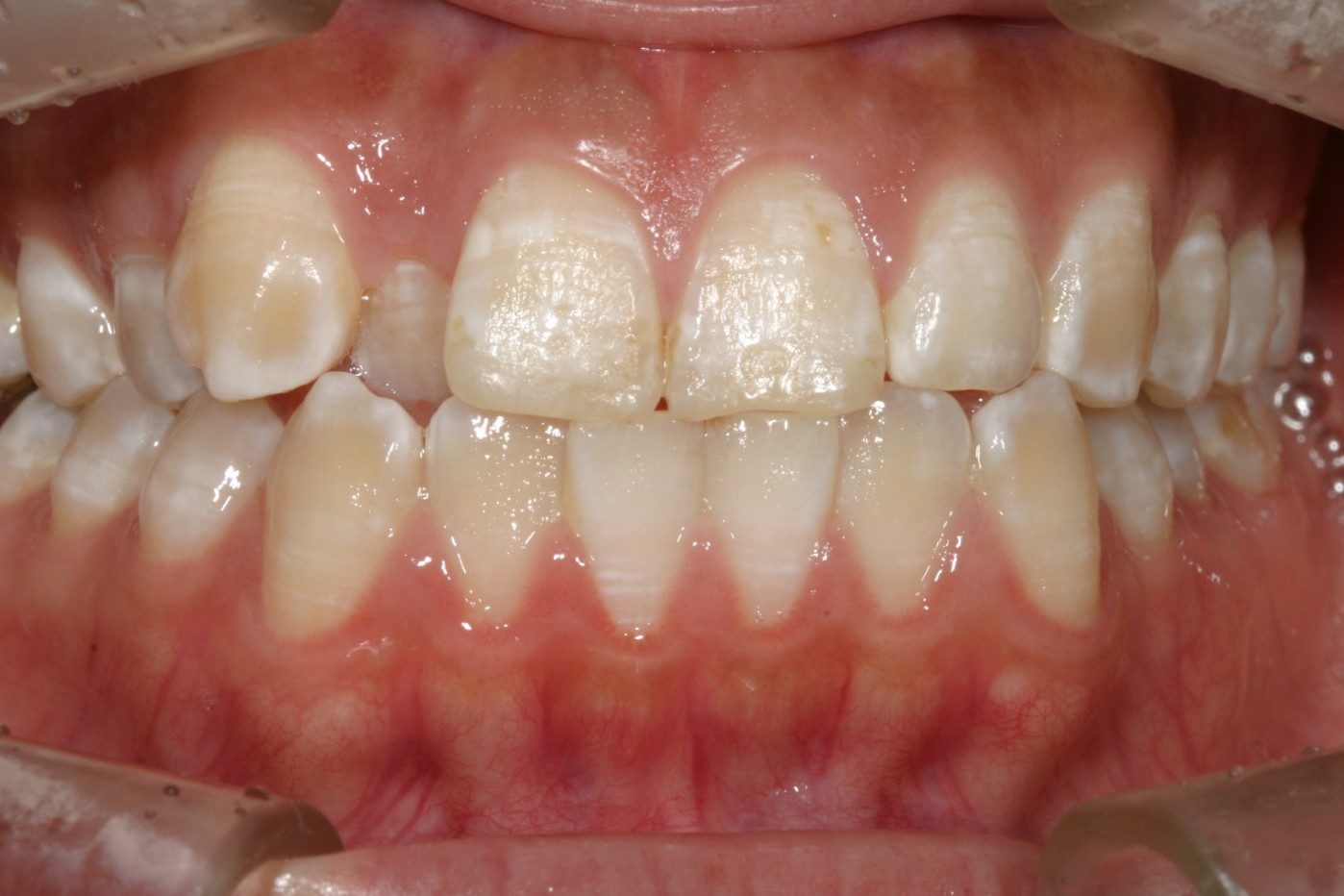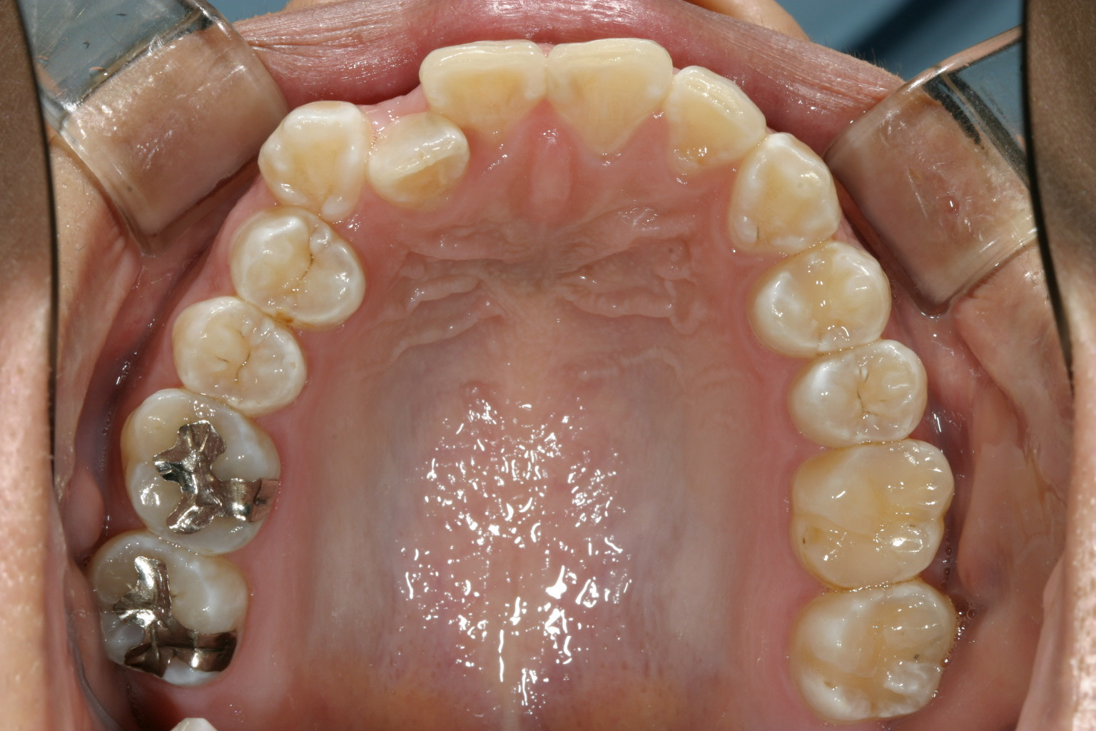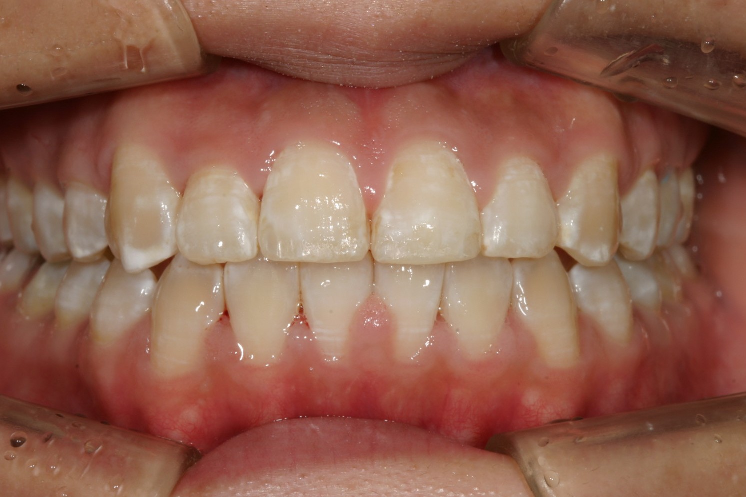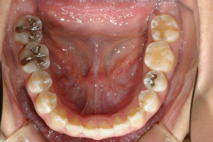 この患者さんは知り合いの方でどんな方法を使ってでもとにかく早く終わりたいと言う希望が有りましたので見栄えは悪いのは承知でマルチループワイヤー矯正を選択致しました。