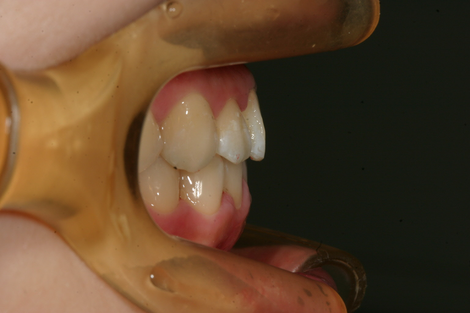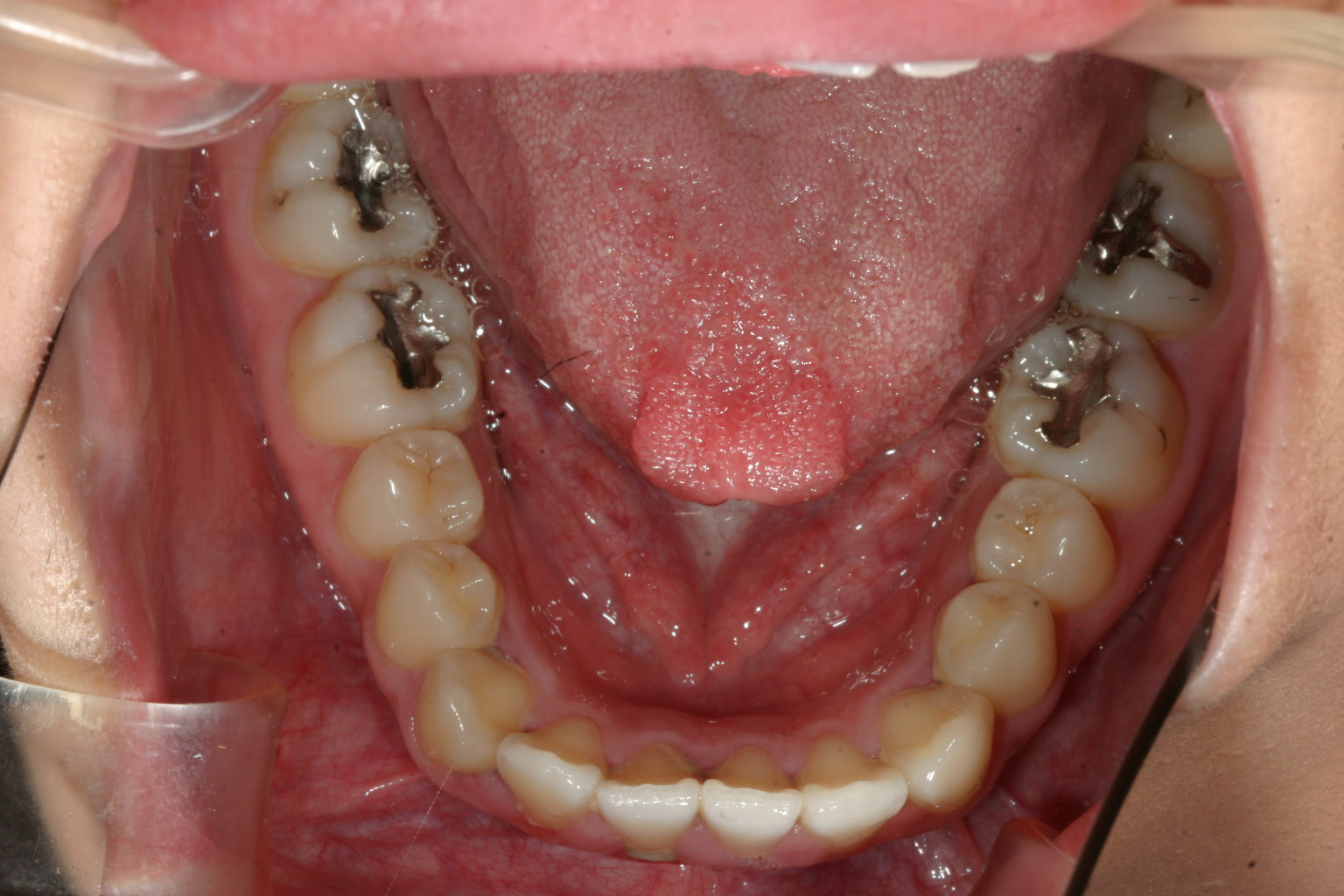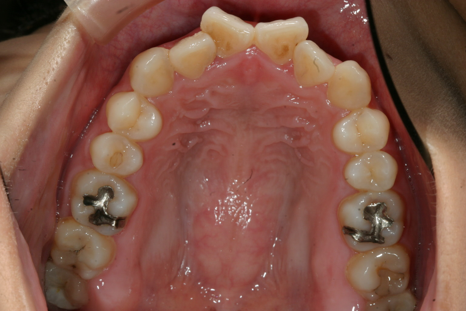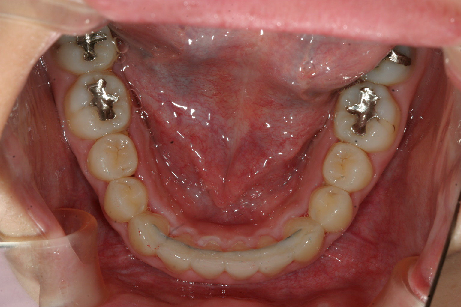 かなりキツイ翼状捻転です。犬歯間幅径が狭いです。
