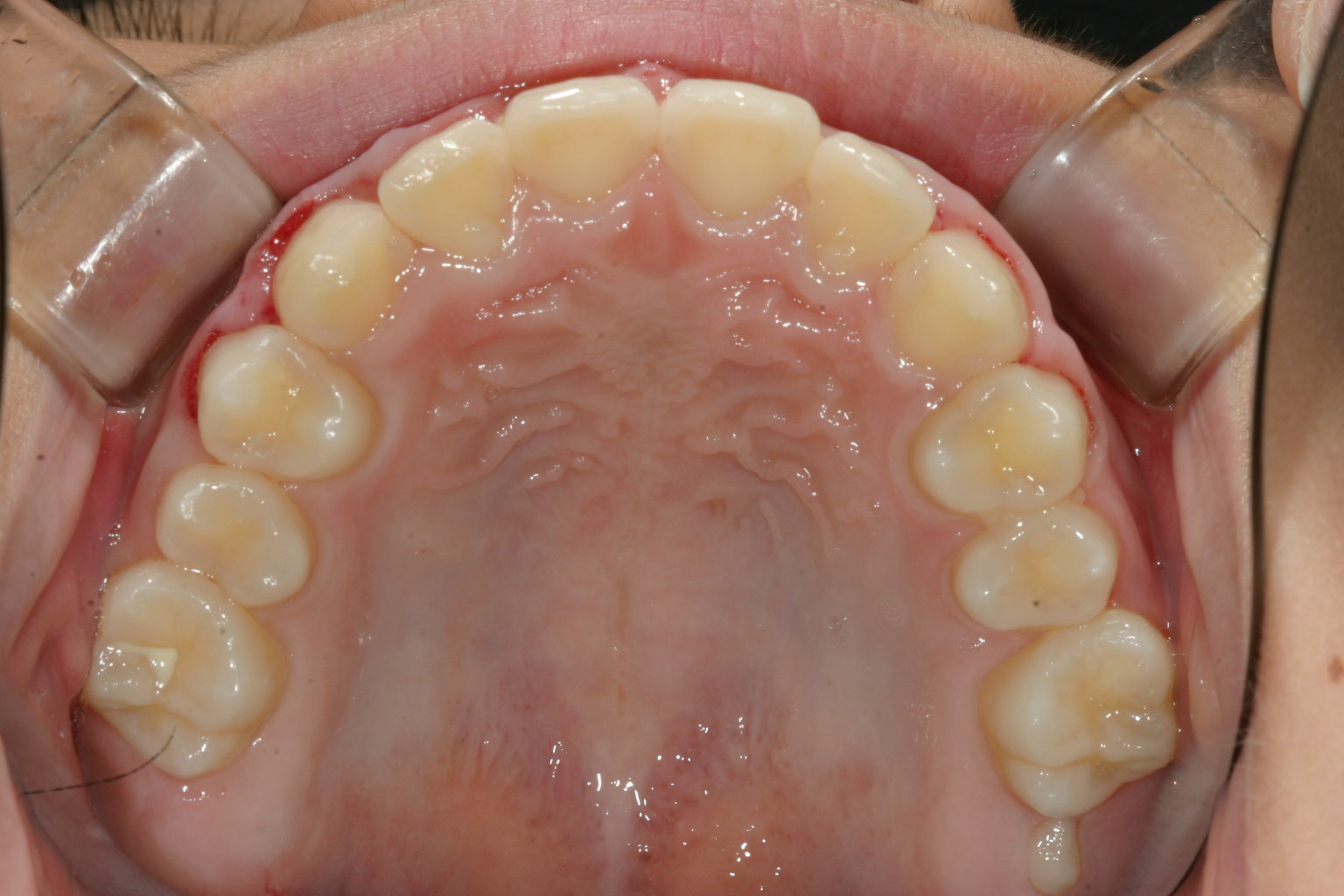 又、通常小児矯正は永久歯が全部萌える迄かなりの期間を要する為、あまり手を付けないのですが、放っておくと下顎が前に出てる為上顎骨の成長を阻害する可能性が有るという意味合いで下顎による上顎骨のブロックされてるのを開放してあげる意味でも必要だと判断いたしました。