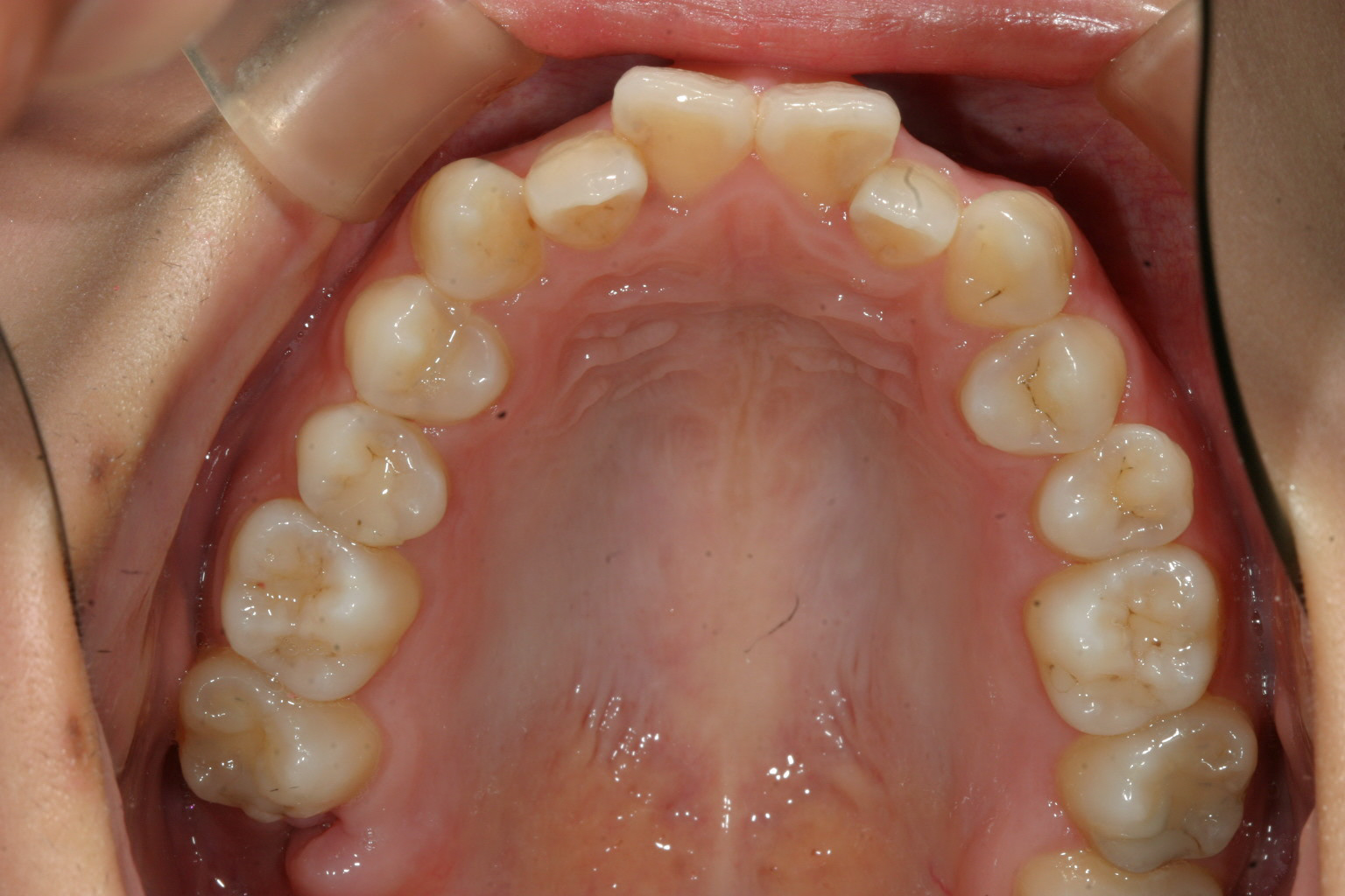アーチが狭い為に前歯が並びきらずガタガタしてます。
