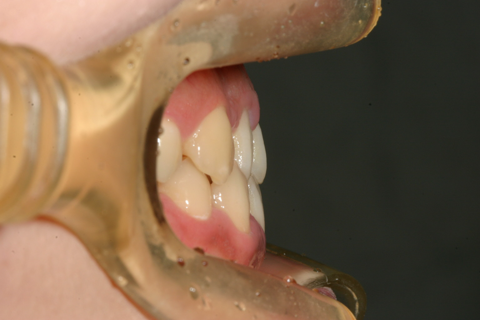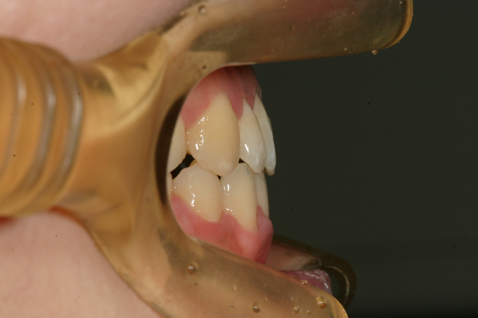 横から見た感じは少し切端咬合気味です。