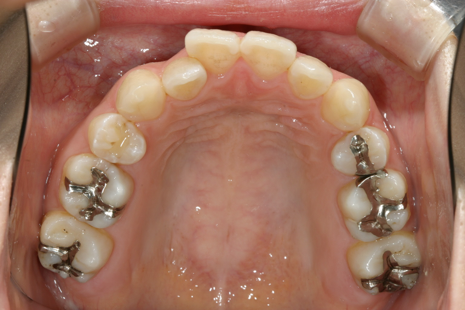 少しアーチが狭くなってきていた関係で前歯にガタつきが出て来ていましたので、アーチを僅か拡大する事により歯の入るスペースを作り