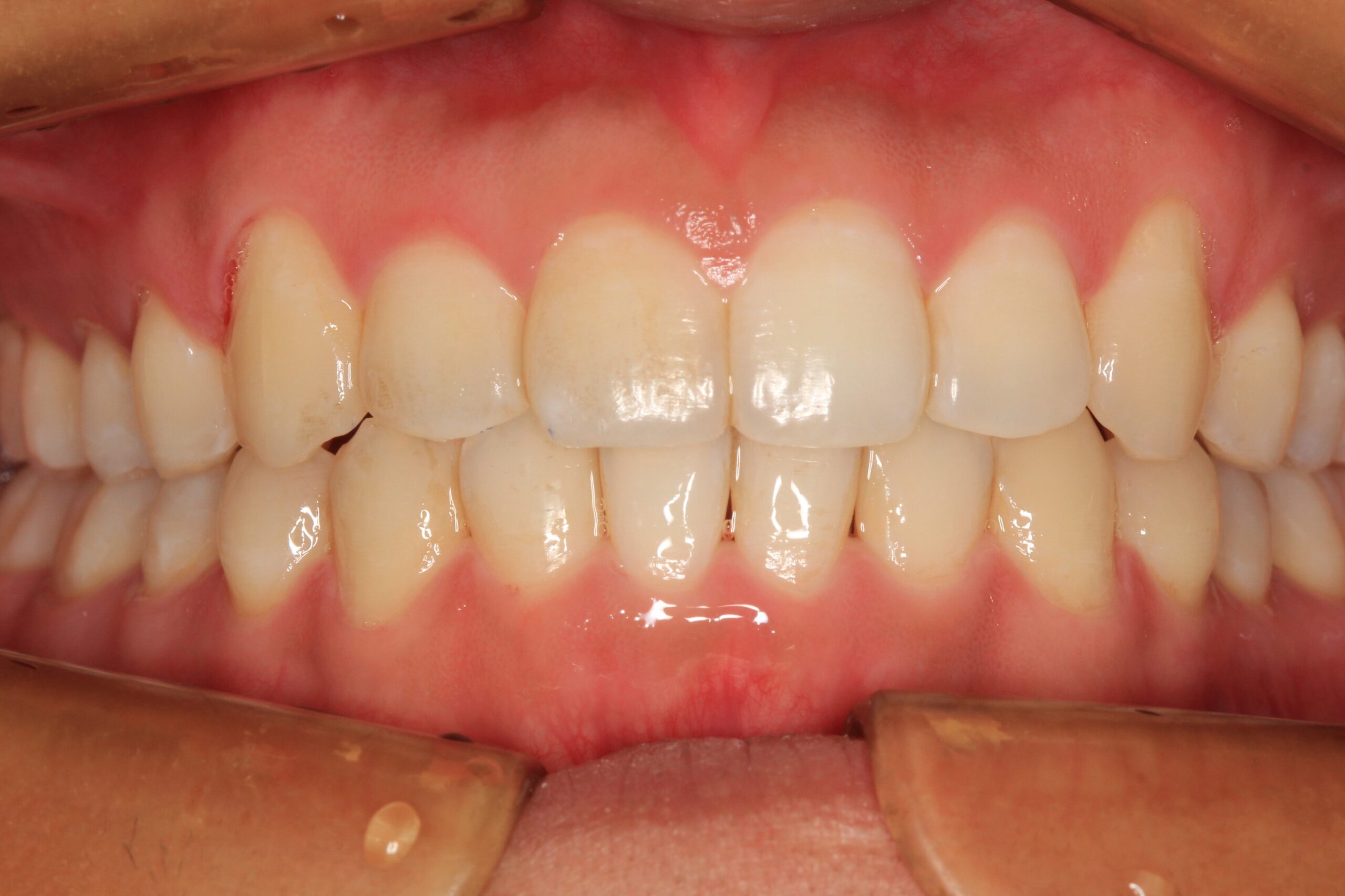 処置内容としましてはアーチの形状をU字に変えるのとインビザラインの得意技であるIPR(歯と歯の隙間を削る)を行うだけで出っ歯になる事も無くこの様に綺麗に改善する事が出来ます。