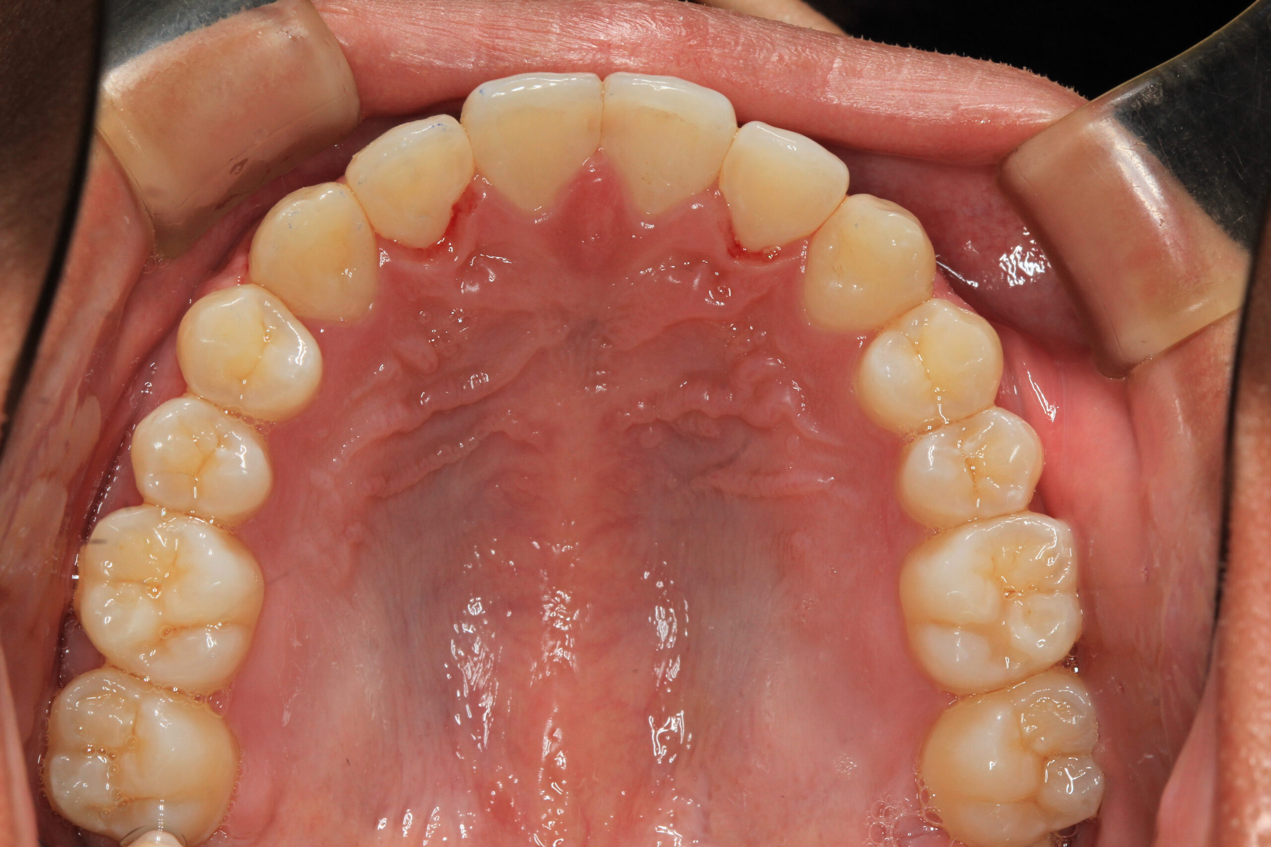アーチの前歯部が狭い為に前歯がガタガタしています。