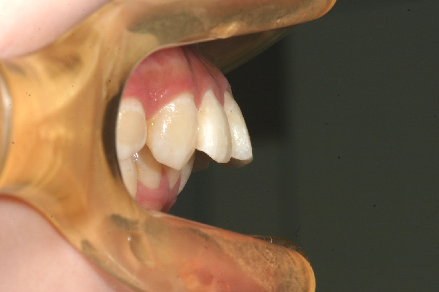こちらの症例は上顎が下顎に比べて全体的に前方に移動していた為、やむなく上顎の左右小臼歯抜歯を行いました。