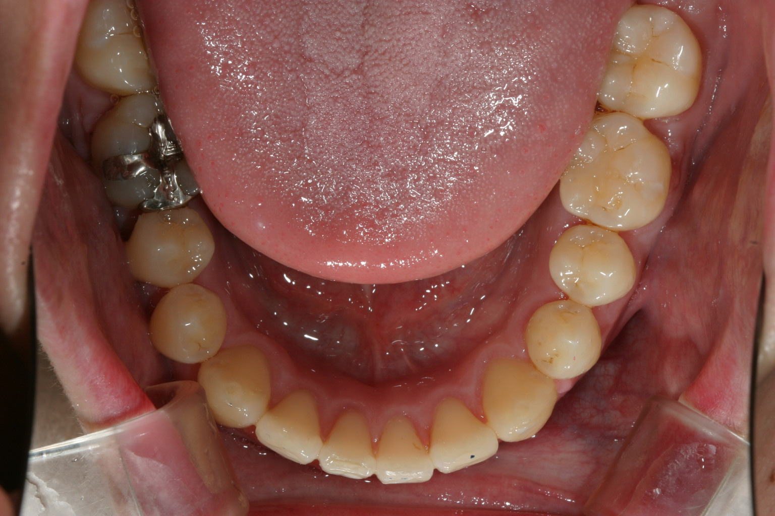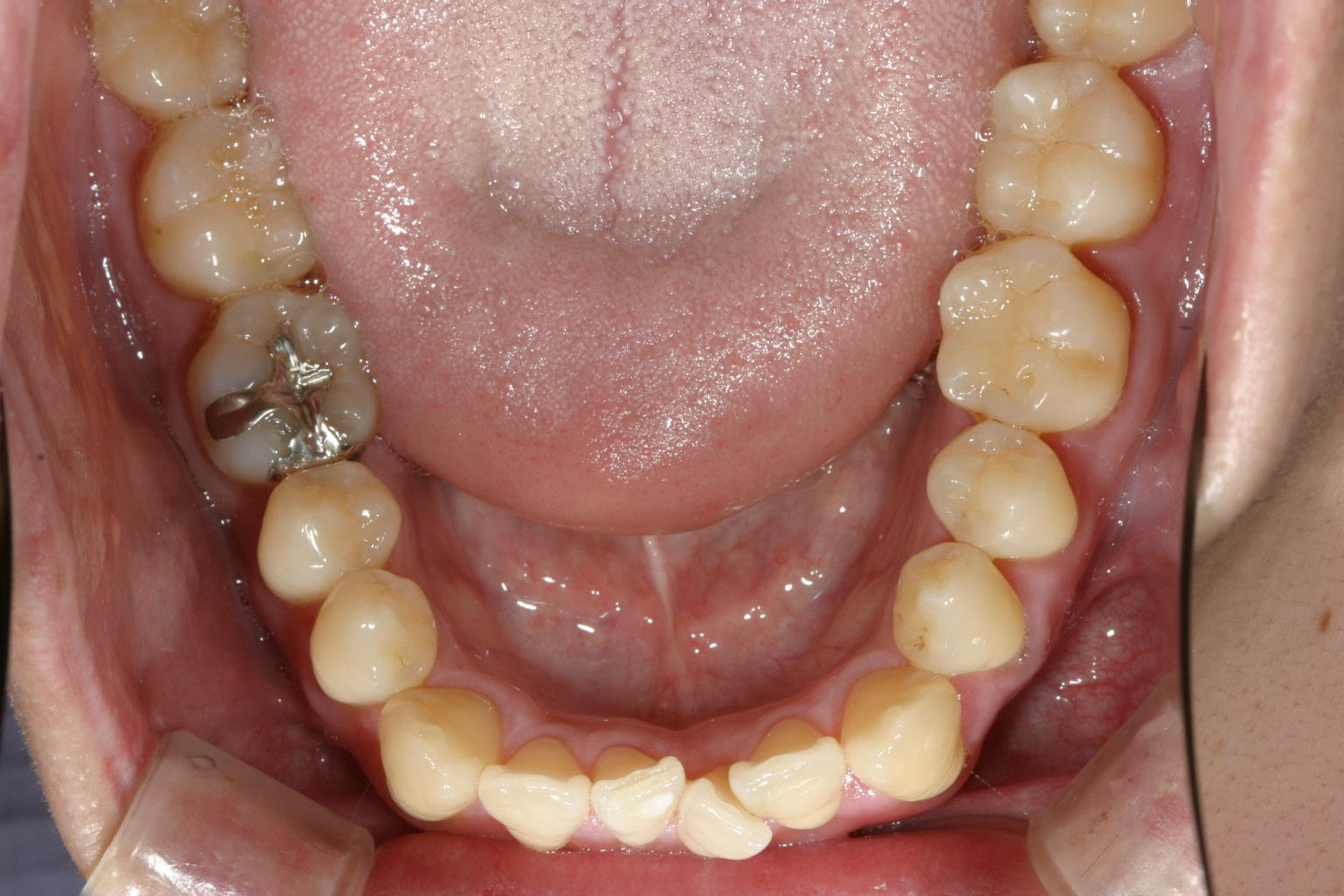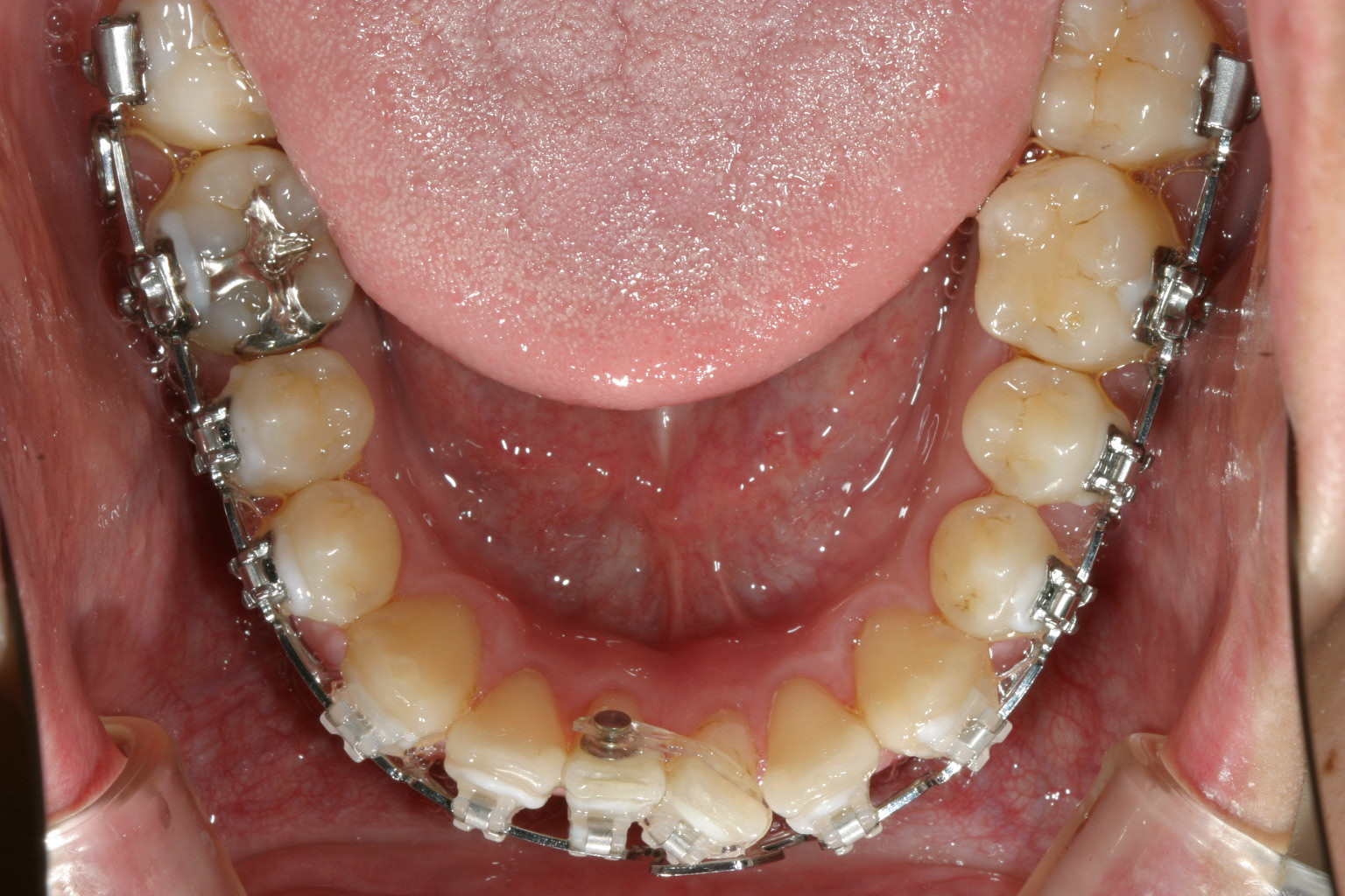 下顎もかなり綺麗になって来ましたが左下1番の歯の回転で手こずっています。