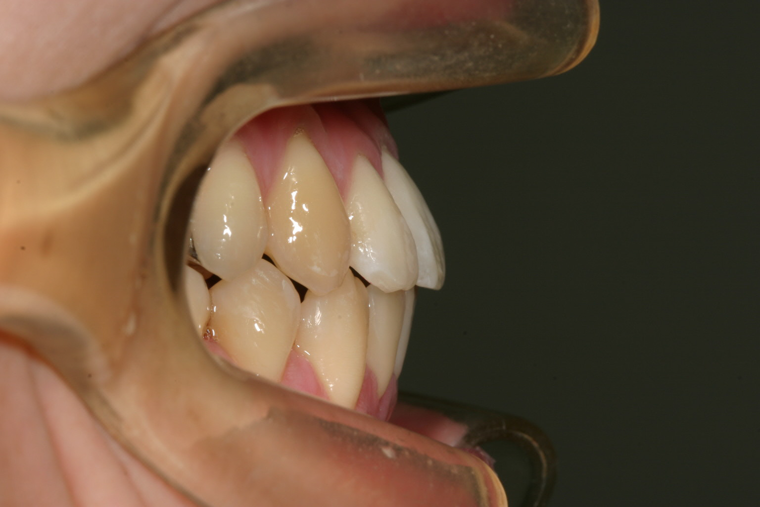 半年後です。右側の2番目の歯の叢生がだいぶ取れてきました。