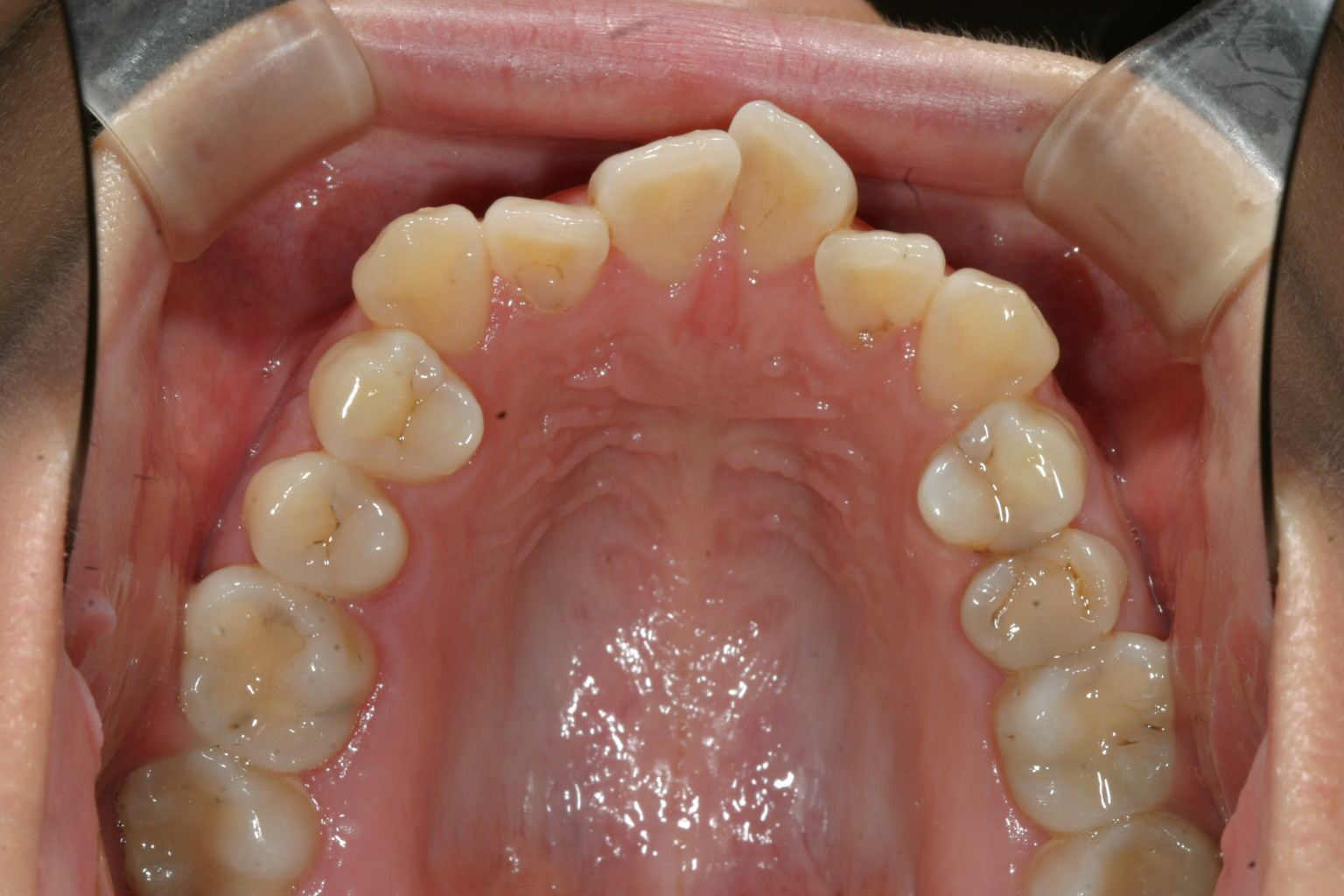 前歯部が狭い為に前歯が上手く並ばずガタガタしています。