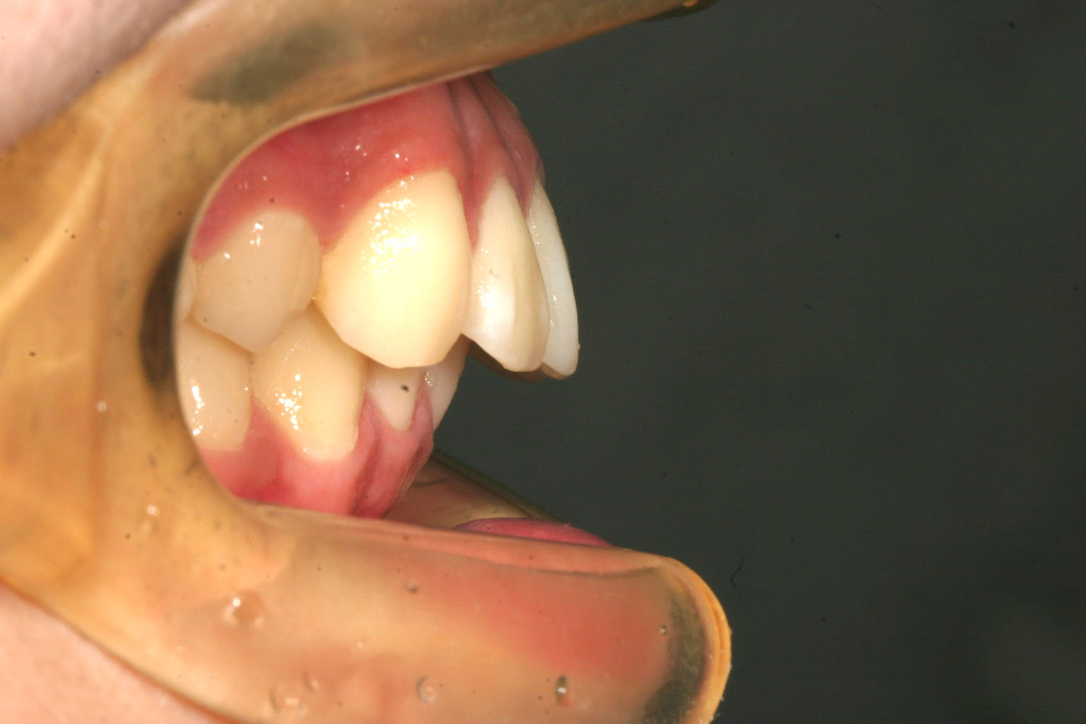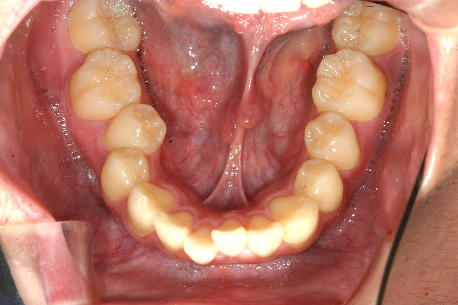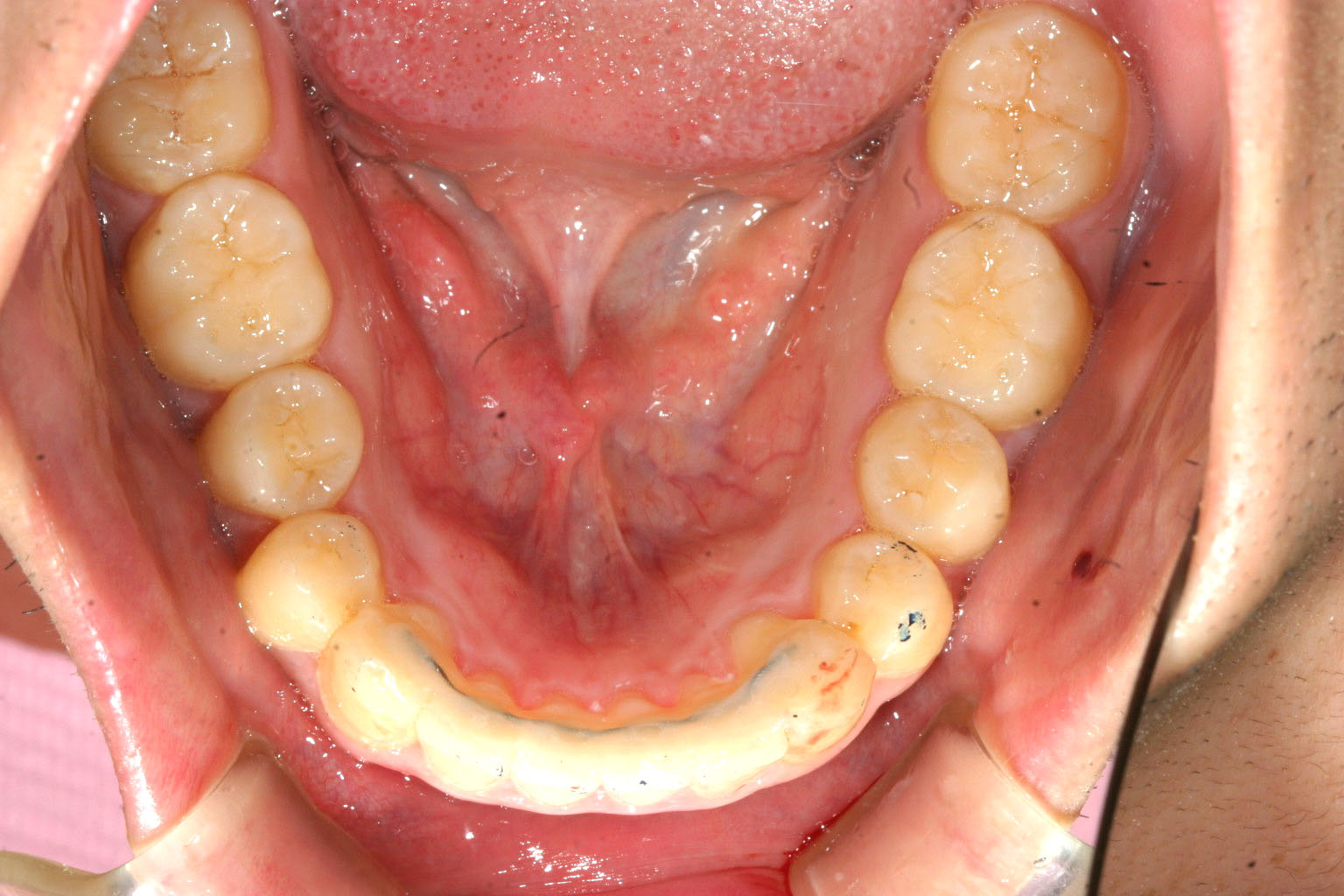 下顎も小臼歯部が狭くなり前歯が突出しています。