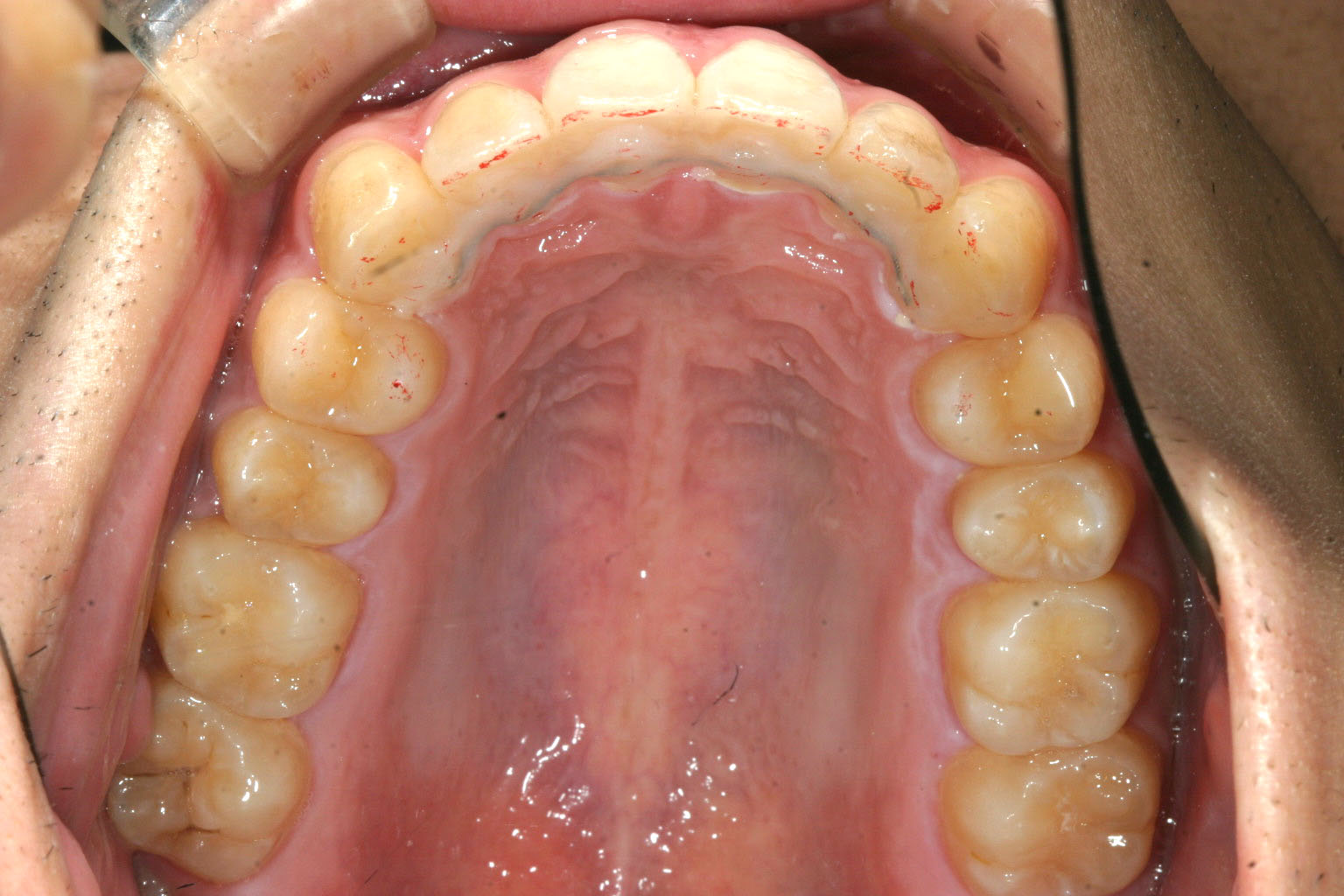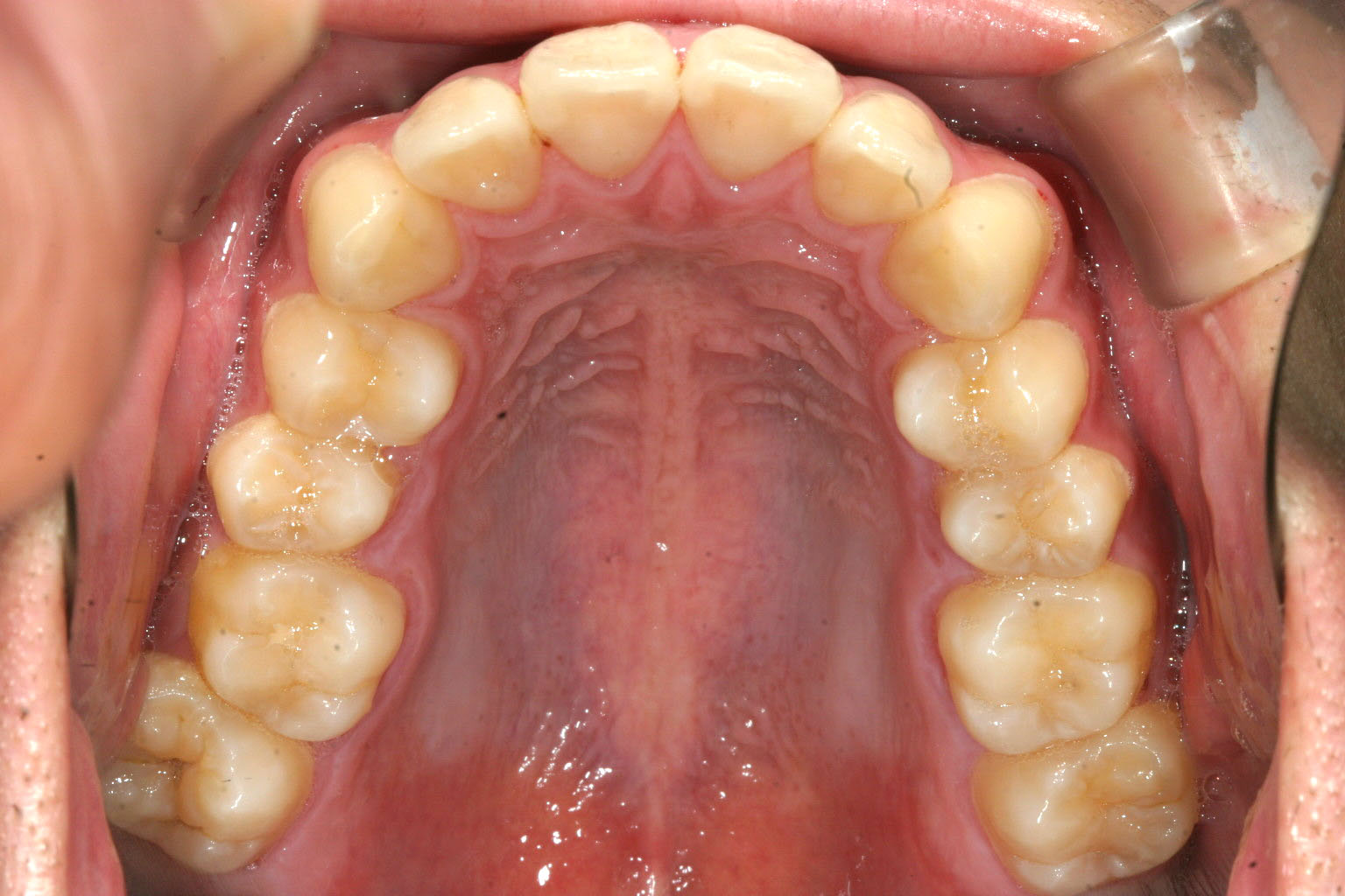 狭くなったアーチフォームの改善とインビザラインの得意技であるIPR(歯と歯の隙間を削る)を行う事によりここまで非抜歯でも改善できると言う症例です。