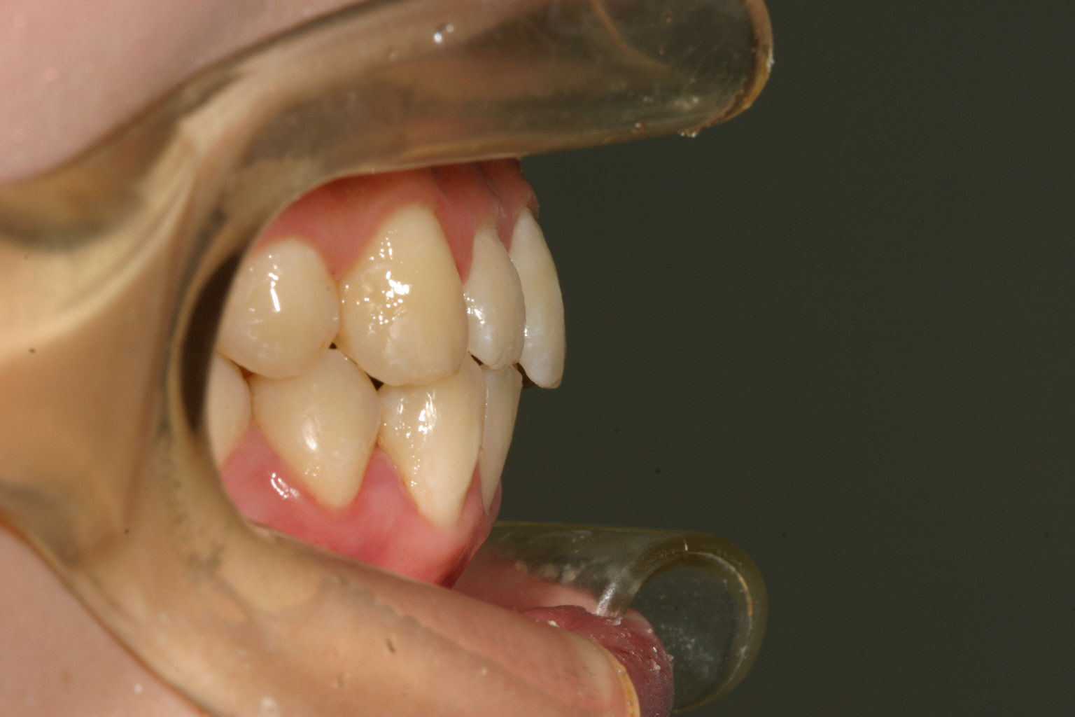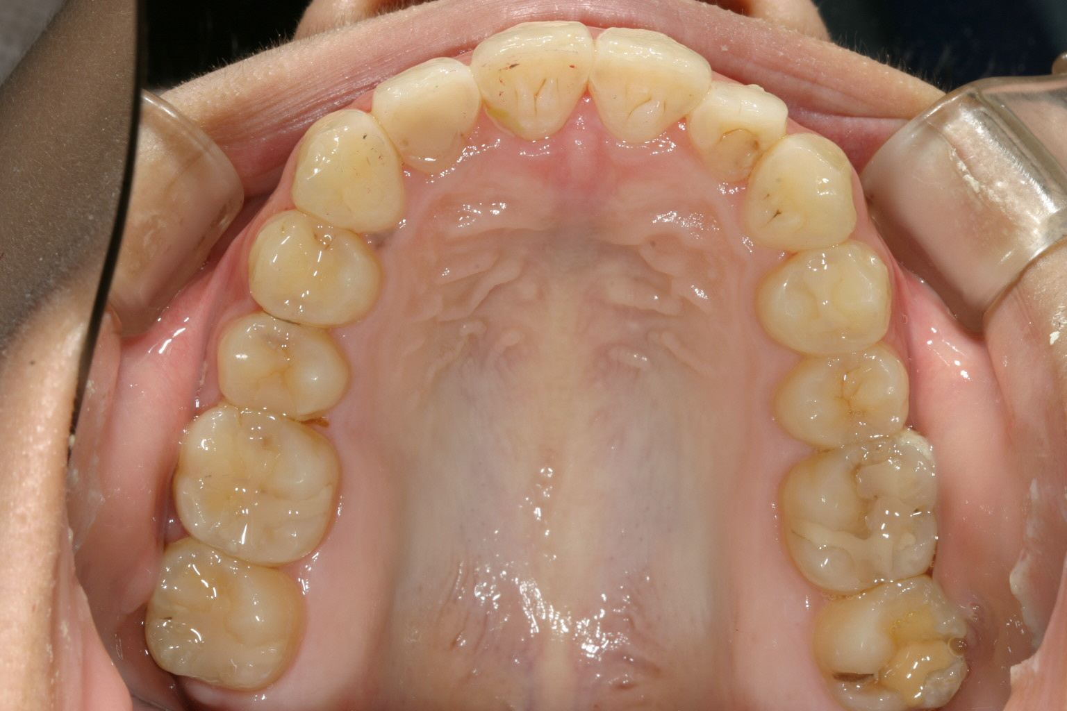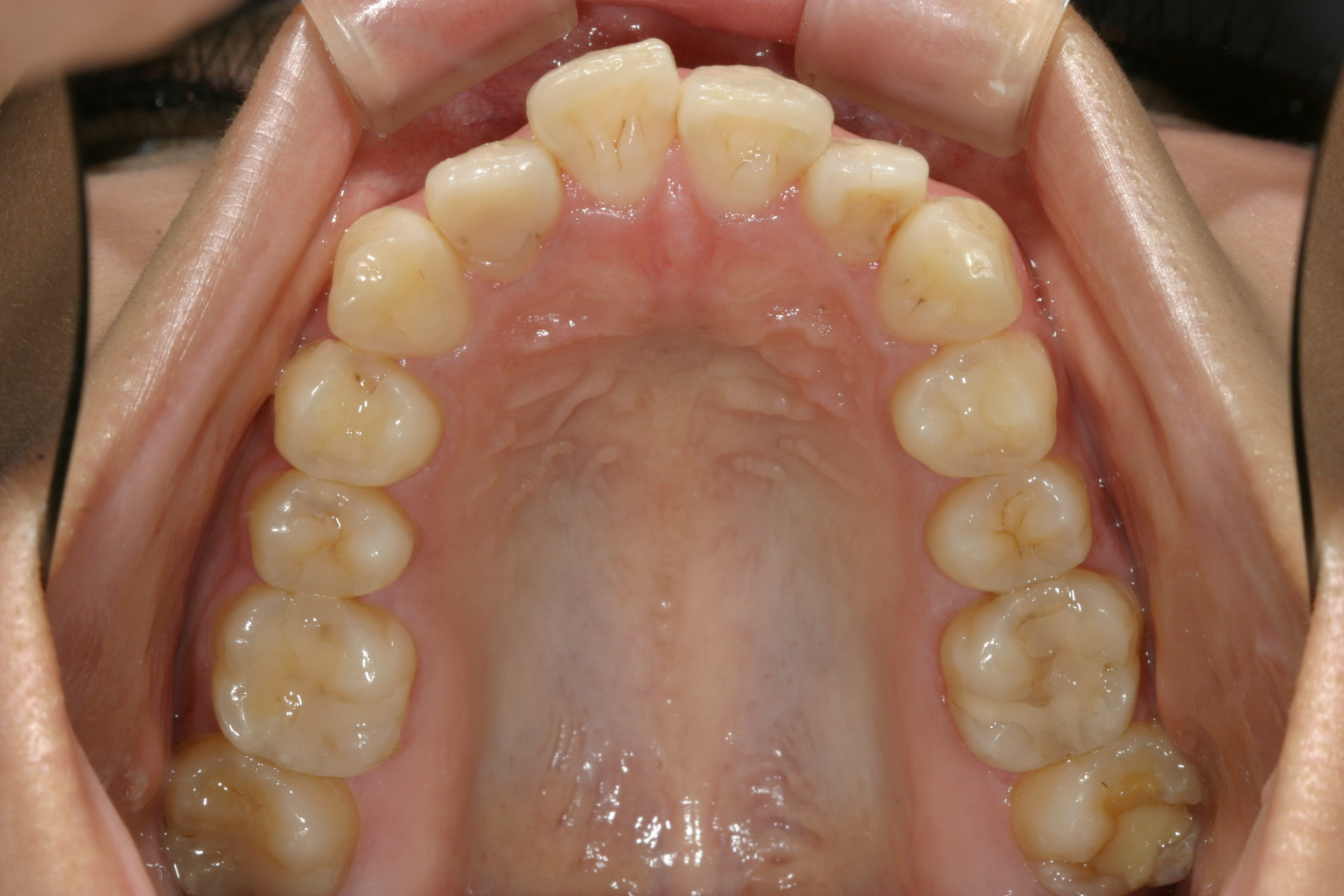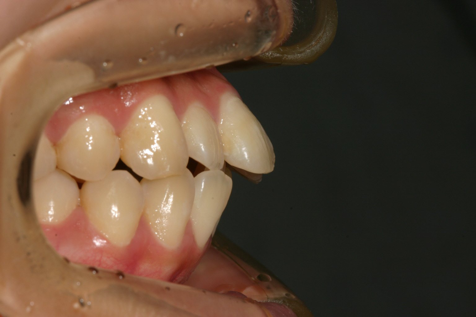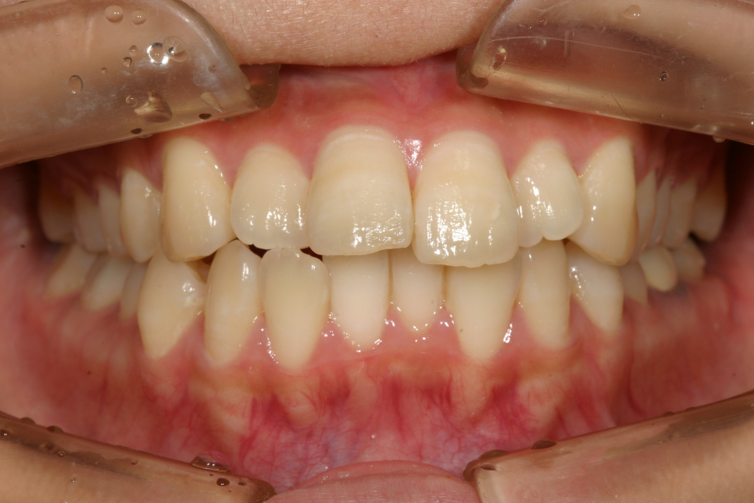 アーチか狭く前歯部が飛び出しています。