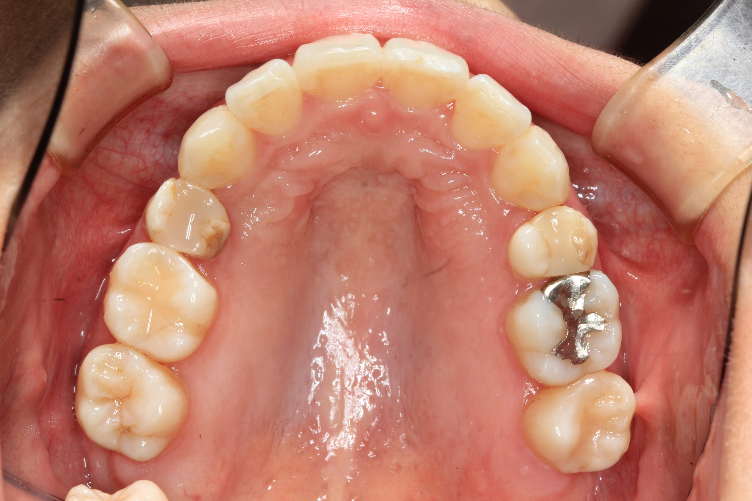 アーチが狭く犬歯が飛び出してかなりのガタガタです。