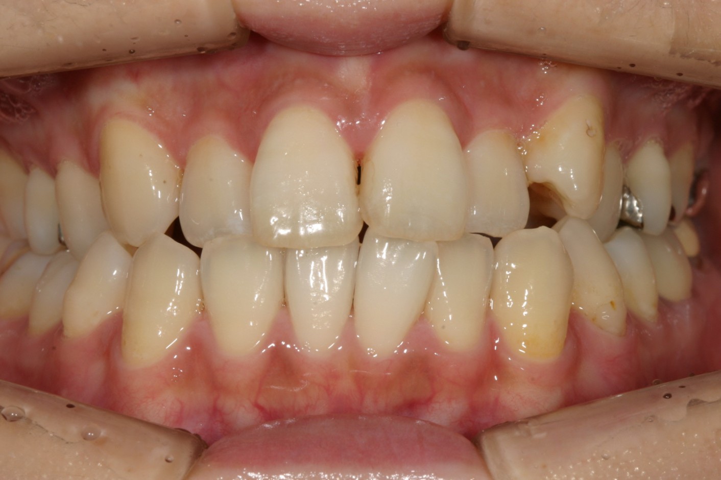 2番目の前歯がへこみ前歯がガタガタしてる。